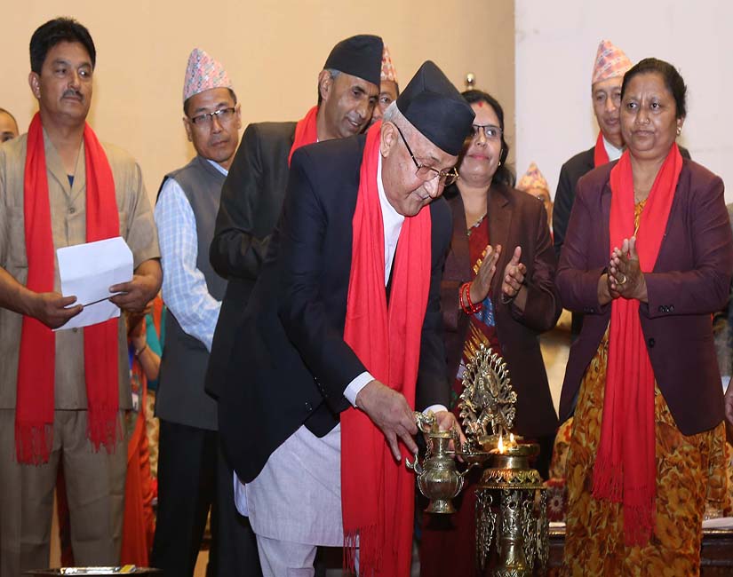 कार्यक्रममा सहभागी अर्थमन्त्री डा युवराज खतिवडा, सङ्घीय मामिला तथा सामान्य प्रशासनमन्त्री लालबाबु पण्डित, कानून, न्याय तथा संसदीय मामिलामन्त्री भानुभक्त ढकाल, महिला, बालबालिका तथा ज्येष्ठ नागरिकमन्त्री थममाया थापासहित सहभागी कार्यक्रममा प्रधानमन्त्री ओलीले आलोचना र हमलाबाट नडराउन पनि आग्रह गर्नुभयो ।
