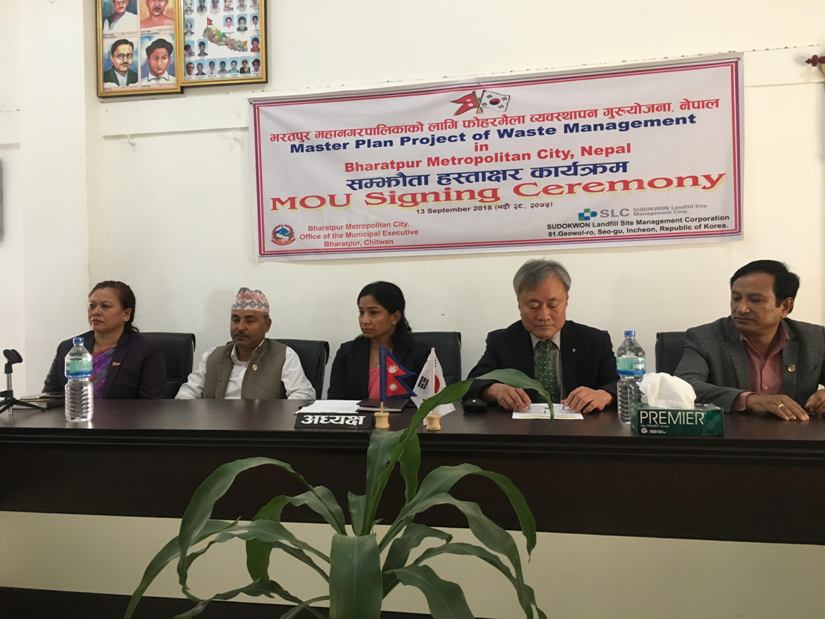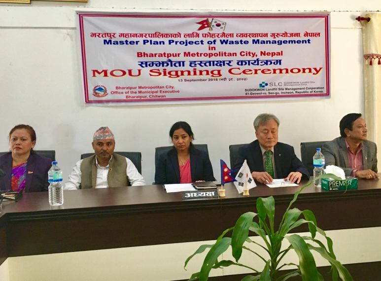 महानगरपालिकाले फोहोर व्यवस्थापनमा कोरियाको एक नम्बरमा पर्ने कम्पनी सुधोकवन ल्याण्डफिल साइड म्यानेज्मेन्ट कर्पोरेसन रिपव्लिक अफ कोरियासँग फोहोर व्यवस्थापनको लागि आज एमओयू (सम्झौता) गरेको हो । भरतपुर महानगरपालिकाबाट प्रमुख रेनु दाहाल र रिपल्लिक अफ कोरियाबाट प्रेसिडेन्ट सियो जुओनले सम्झौतापत्रमा हस्ताक्षर गरेका छन् ।