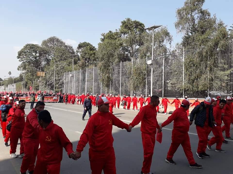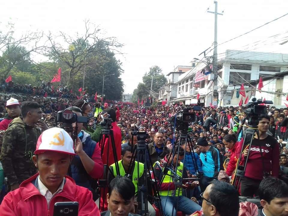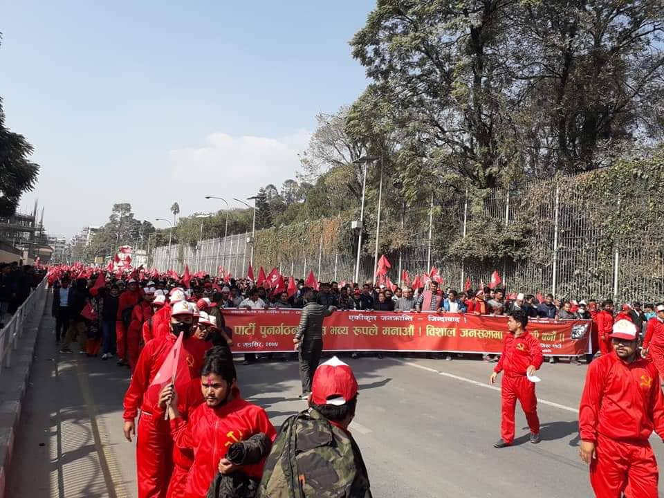 जनसभा सुरु हुनुअघि अघि काठमाडौंको बबरमहल, लैनचौर र कालिमाटीबाट निस्किएको जुलुस सहरका विभिन्न स्थान हुँदै कार्यक्रमस्थल सम्म पुगेर सभामा परिणत भएको थियो ।
