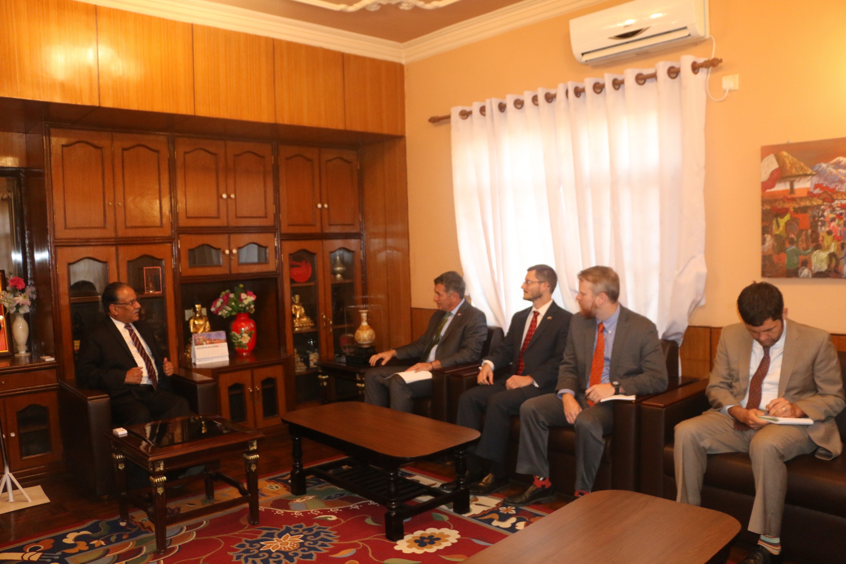 अध्यक्ष प्रचण्डले नेपालको शान्ति प्रक्रिया र संविधान निर्माणमा अमेरिकी सरकार र जनताको महत्वपूर्ण भूमिका रहेको बताउनुभयो । उहाँले नेपाल आर्थिक समृद्धिको युगमा प्रवेश गरेकाले सबैको सहयोग र सद्भाव आवश्यक रहेको औंल्याउनुभयो । अध्यक्ष प्रचण्डले जलविद्युत, पर्यटन र कृषिमा आधारित उद्योग समृद्ध नेपालका प्राथमिकता भएको पनि जानकारी गराउनुभयो ।