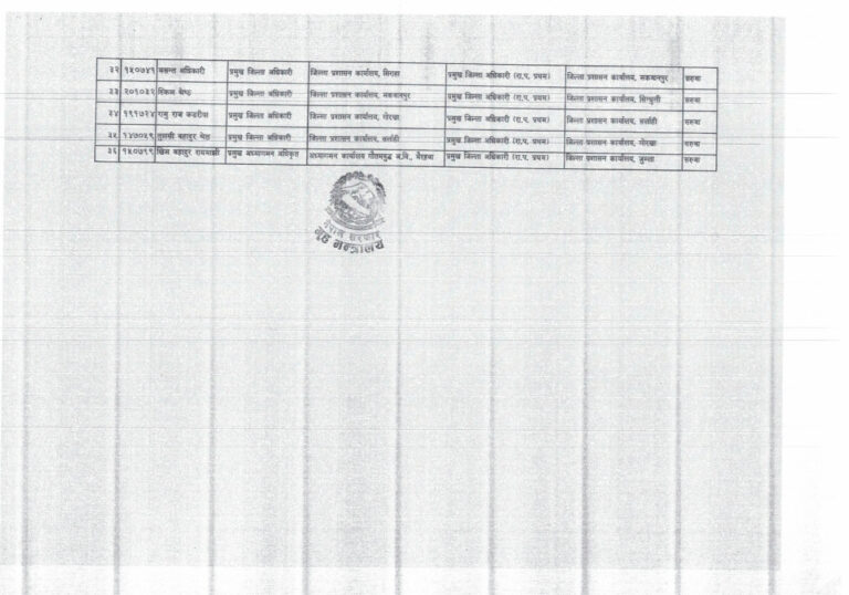 मन्त्रालयले केही जिल्लामा नयाँ सीडिओको जिम्मेवारी तोकिएको छ भने केहीलाई स्थानान्तरण गरी अन्य जिल्लामा पठाइएको छ।