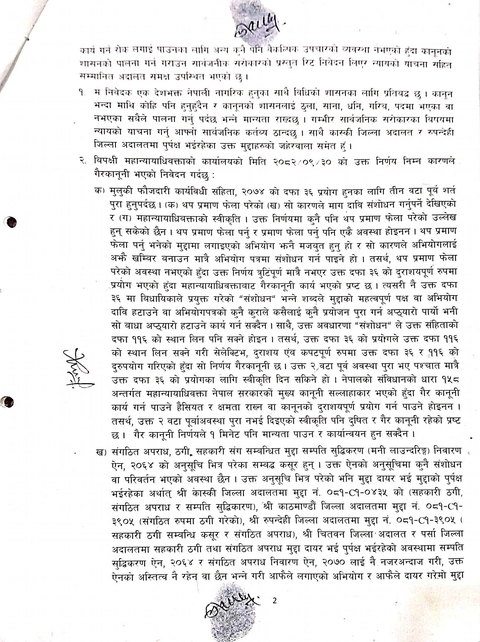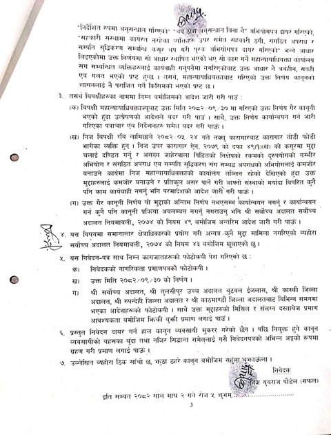 युवराज पौडेलले महान्यायाधिवक्ताको निर्णय संविधान र कानून विपरीत भएको दाबी सहित त्यसको बदरको माग गर्दै निवेदन पेश गरेका हुन् ।