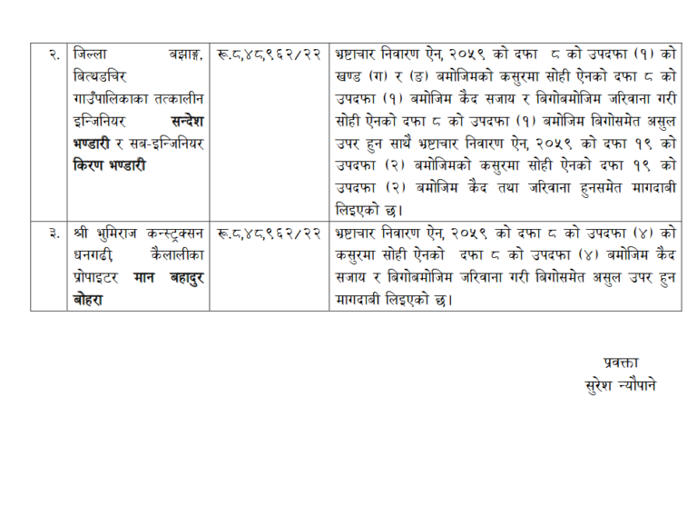 कर अधिकृतसहित दुई जनाविरुद्ध भ्रष्टाचार मुद्दा