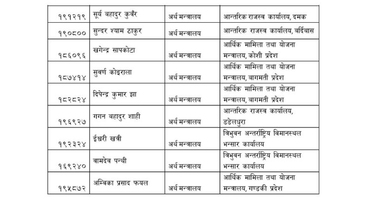 अर्थ मन्त्रालयमातहतका ९० जना अधिकृतको जिम्मेवारी हेरफेर