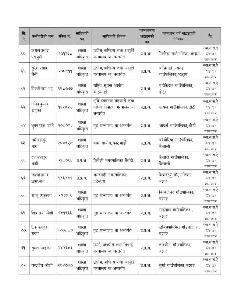 प्रमुख प्रशासकीय अधिकृतविहीन स्थानीय तहमा सामान्य प्रशासनले पठायो ६३ जना उपसचिव