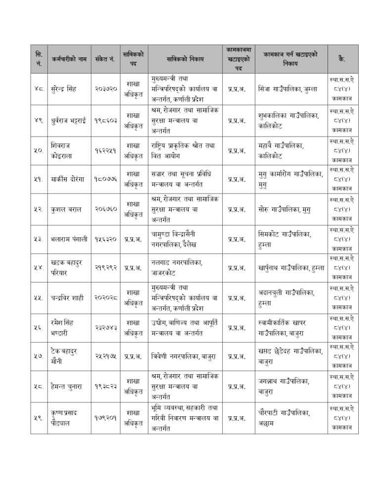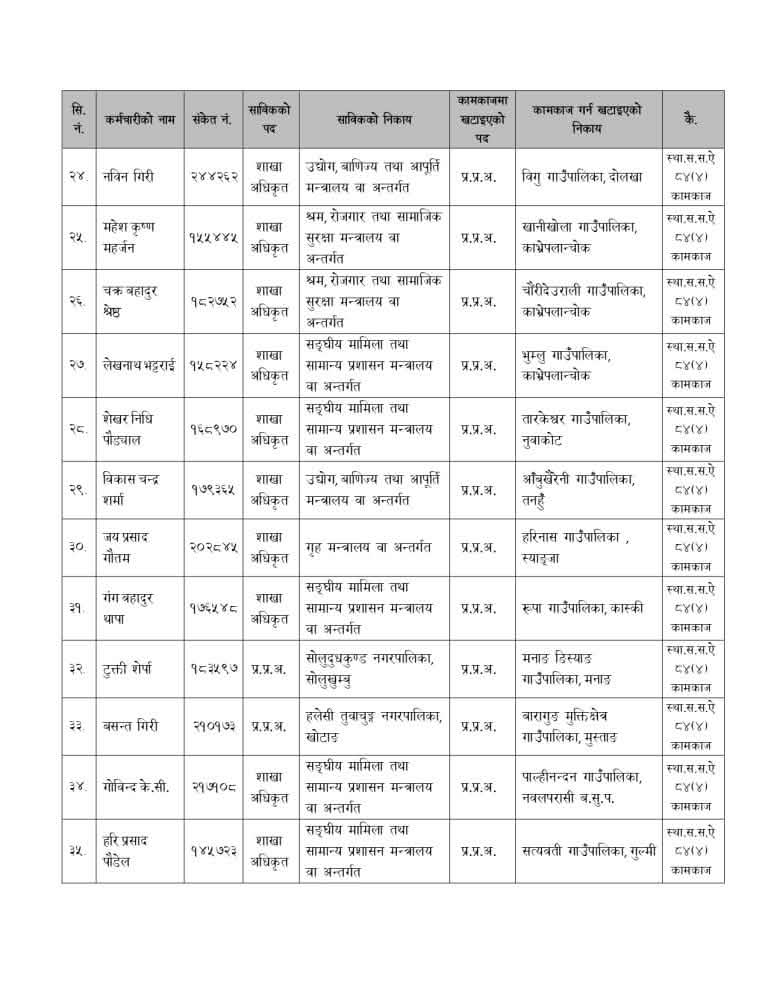 मन्त्रालयले बिहीबार निर्णय गरेर नेपाल प्रशासन सेवा, सामान्य प्रशासन समूह, राजपत्राकिंत तृतीय श्रेणी, शाखा अधिकृत वा सो सरहका कर्मचारीलाई रिक्त स्थानमा खटाएको हो ।