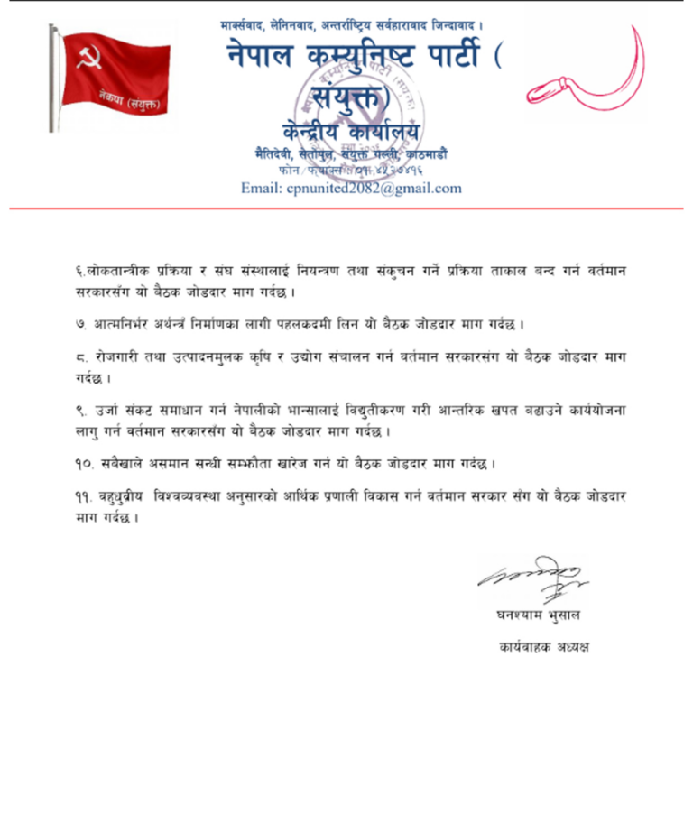 लोकतान्त्रिक प्रक्रिया र सङ्घ संस्थालाई नियन्त्रण तथा सङ्कुचन गर्ने प्रक्रिया तत्काल बन्द गर्न, सबै खाले असमान सम्धी सम्झौता खारेजलगायत ११ बुँदे प्रस्ताव पारित गरेको छ।