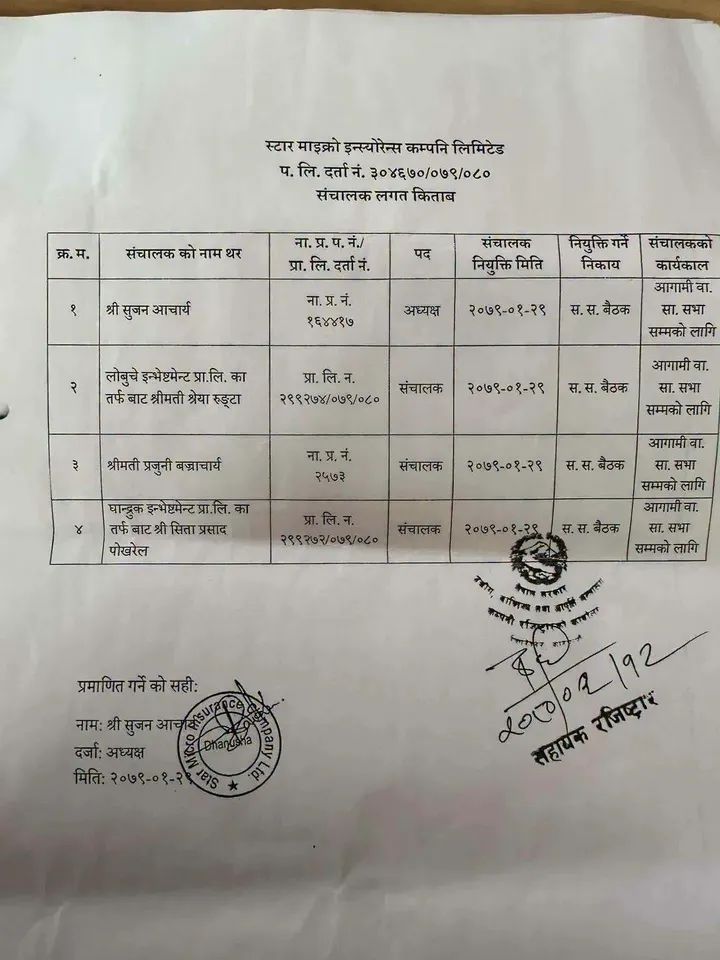 सार्वजनिक विवरणअनुसार ‘स्टार माइक्रो इन्स्योरेन्स कम्पनी लिमिटेड’मा भट्ट र गुरुङबीच व्यावसायिक साझेदारी रहेको उल्लेख गरिएको छ ।