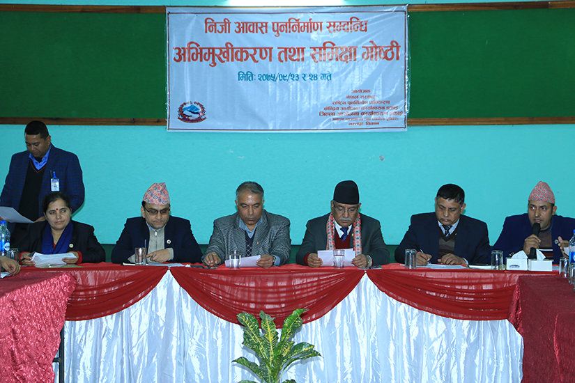 राष्ट्रिय पुनःनिर्माण प्राधिकरणका प्रमुख कार्यकारी अधिकृत सुशील ज्ञवालीले स्थानीय तहसँग समन्वय गरी अघि बढ्न पुनःनिर्माणका अधिकार स्थानीय तहमा प्रत्यायोजन गर्न लागिएको बताउनुभयो । दुई वर्षपछि प्राधिकरण नहुने भन्दै यसले हासिल गरेका अनुभवलाई स्थानीय तहमा पु¥याउन लागिएको उहाँले बताउनुभयो । पुनःनिर्माणको काम स्थानीय तहमार्फत हुँदा दिगो हुने उहाँले बताउनुभयो ।