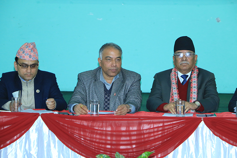अध्यक्ष दाहालले भन्नुभयो,“राष्ट्रिय मुद्दामा मिलेर काम गर्ने बारेमा प्रधानमन्त्रीजीको अध्यक्षतामा शेरबहादुरजी, म लगायत वरिष्ठ नेताको महत्वपूर्ण बैठक बसेर राष्ट्रिय मुद्दामा समझदारीका साथ जाने कुरा भएको छ ।” जिल्ला तहमा पनि जनप्रतिनिधि एक ठाउँमा बसेर पुनःनिर्माण र विकासका मुद्दामा छलफल गर्न उहाँले सुझाव दिनुभयो । अध्यक्ष दाहालले भूकम्प प्रभावितलाई ऐलेनी र वनको जग्गामा पुनःनिर्माणमा परेको समस्या समाधान गर्न प्रधानमन्त्री समक्ष आग्रह गर्ने बताउनुभयो ।