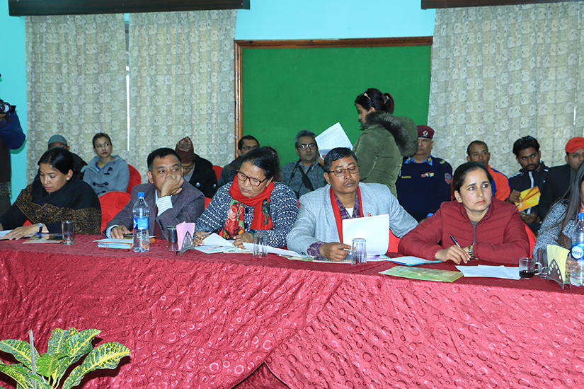 बैठकमा हालसम्म प्राधिकरणले जिल्लामा गरेका कामका विषयमा प्राधिकरणका कार्यकारी सदस्य हरिराम पराजुली र जिल्ला आयोजना कार्यान्वयन एकाइ अनुदान व्यवस्थापन तथा स्थानीय पूर्वाधार कार्यालय भरतपुरका आयोजना व्यवस्थापक पुष्करप्रसाद पोख्रेलले प्रकाश पार्नुभएको थियो । गोर्खा भूकम्पले जिल्लाका सात हजार ३३५ घरधुरीमा क्षति पु¥याएको थियो ।