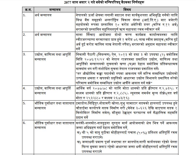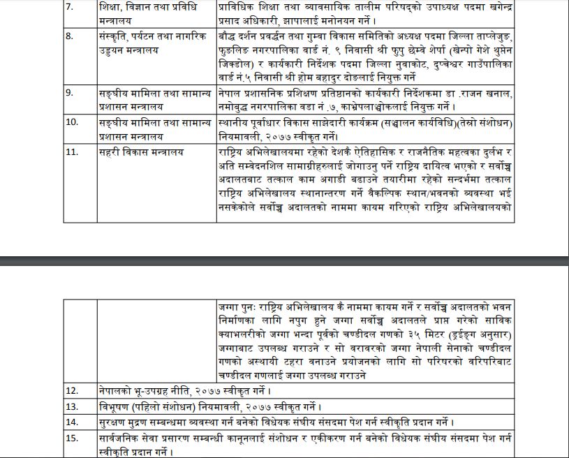 यस्ता छन् मन्त्रिपरिषद् बैठकका निर्णयहरू