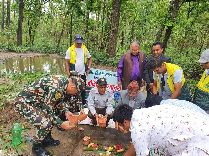 करीब १० लाखको लागतमा निर्माण हुन लागेको शौचालयको आज एक कार्यक्रमको आयोजना गरी शिलान्यास गरीएको छ । तीन महिनामा सम्पन्न गरी राष्ट्रिय निकुञ्जलाई हस्तान्तरण गरीने कार्यक्रमका संयोजक एवम् क्लबका ईलेक्ट अध्यक्ष सुमन कोइरालाले बताए ।
