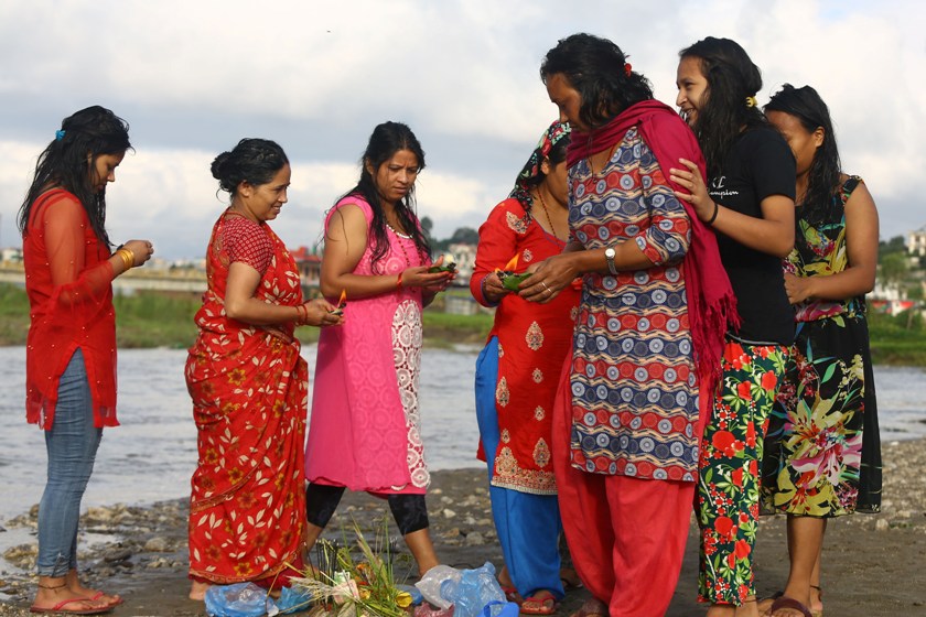 काठमाडौं । भाद्र शुक्ल पञ्चमीका दिनमा मनाइने ऋषि पञ्चमी आज नेपाली नारीहरुले अरुन्धती सहित सप्त ऋषिको पूजा आराधना गरी मनाउँदैछन् ।