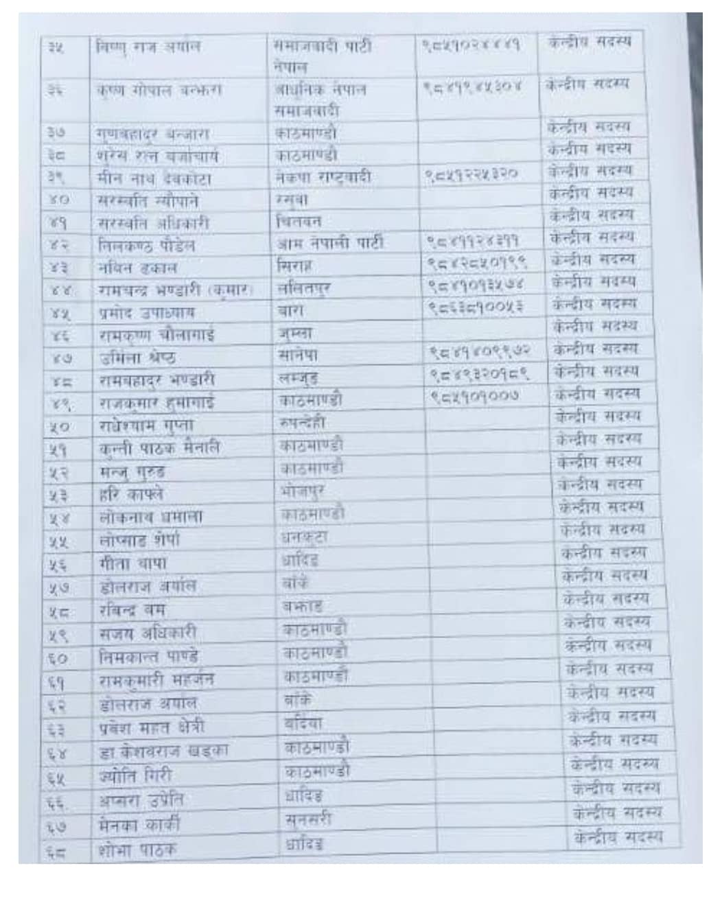 यी हुन् केन्द्रीय सदस्यहरूः-