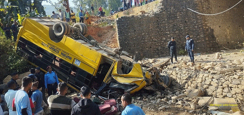 स्कुल बस दुर्घटना अपडेट : आमा र छोराको मृत्यु, २८ जनाको उपचार हुँदै
