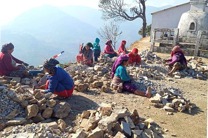 सिर्पाली दुई बच्चा च्यापेर गिट्टी कुट्दै