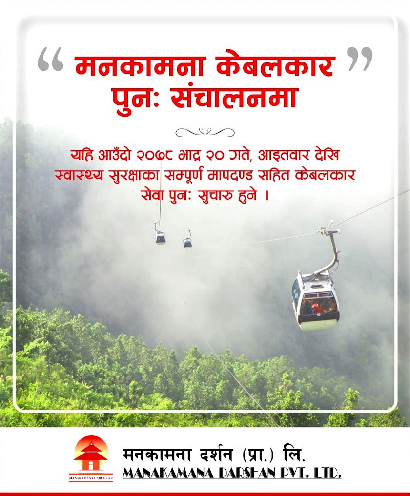 मनकामना केबलकार शुक्रबार बन्द हुने, आकस्मिक मर्मतसम्भार हुँदै