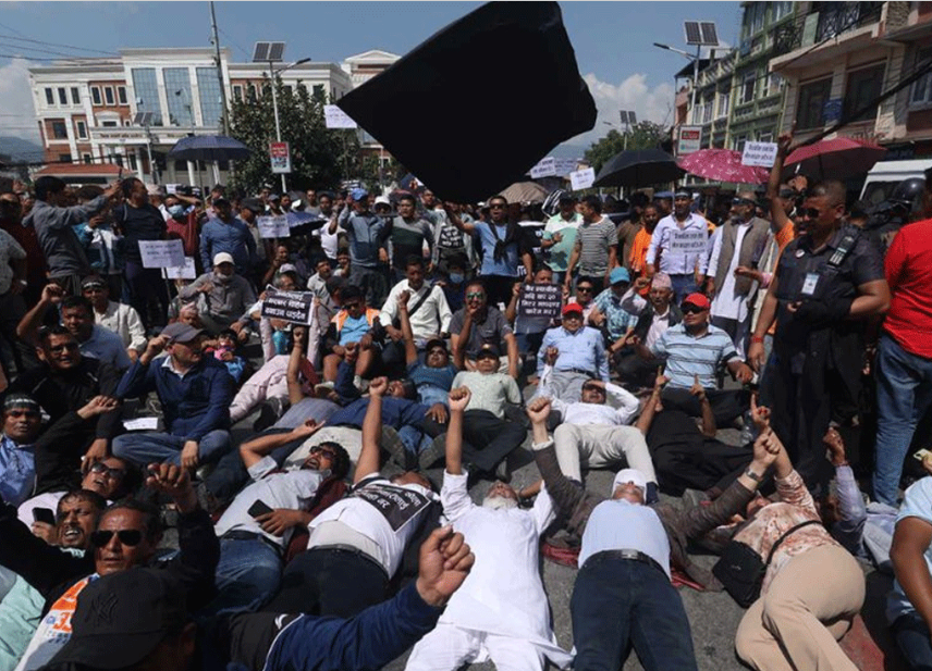 नदी मापदण्डविरुद्धको प्रदर्शनमा माइतीघरको सडकमा सुते राजेन्द्र महतो